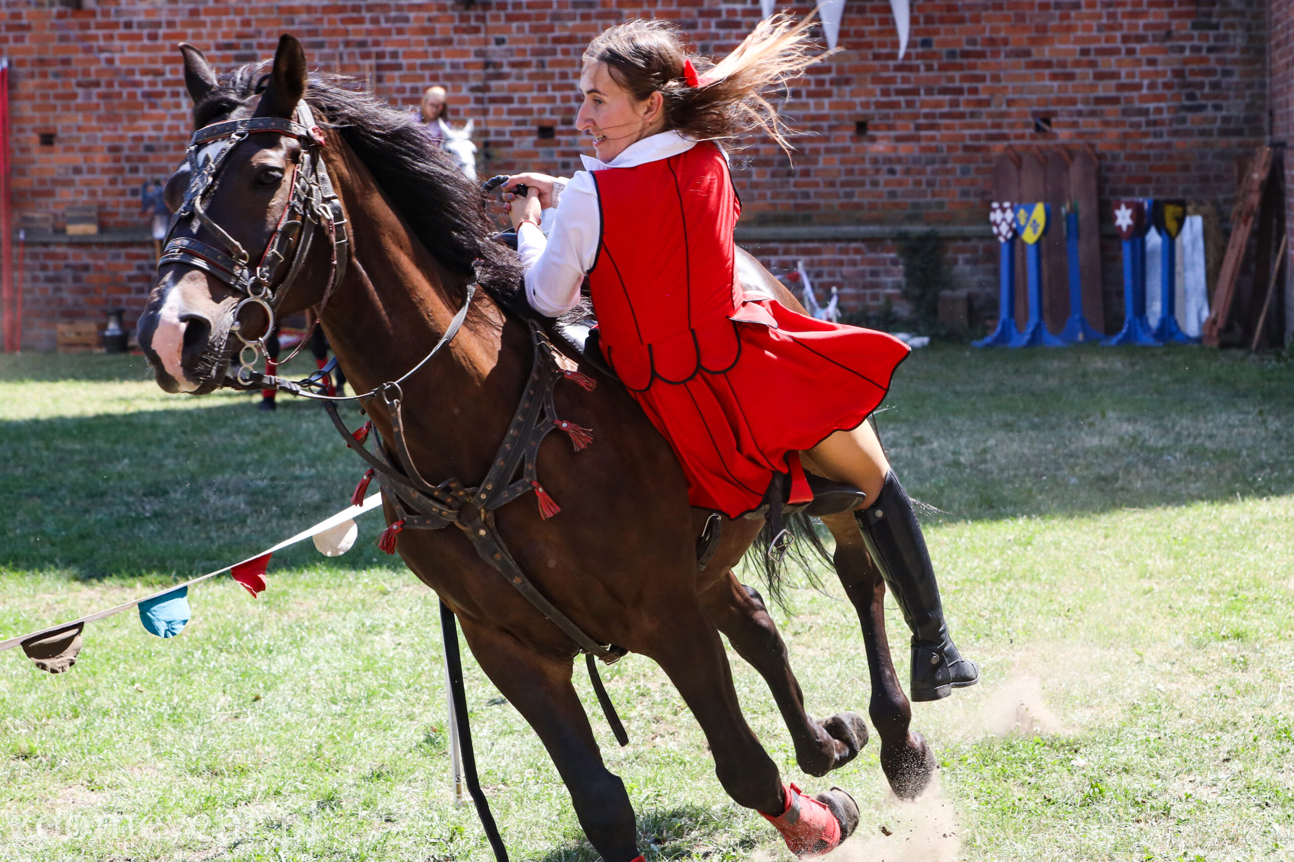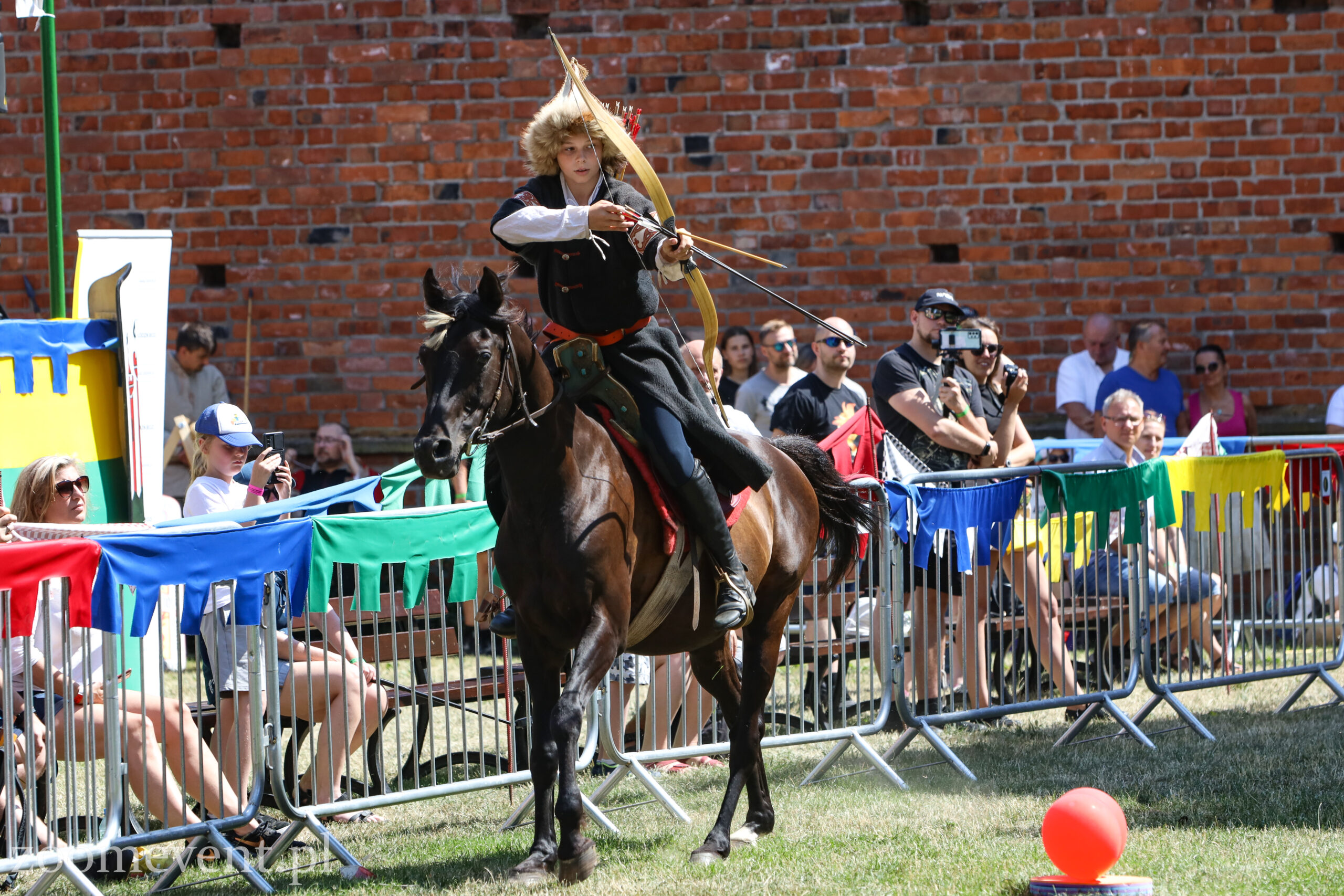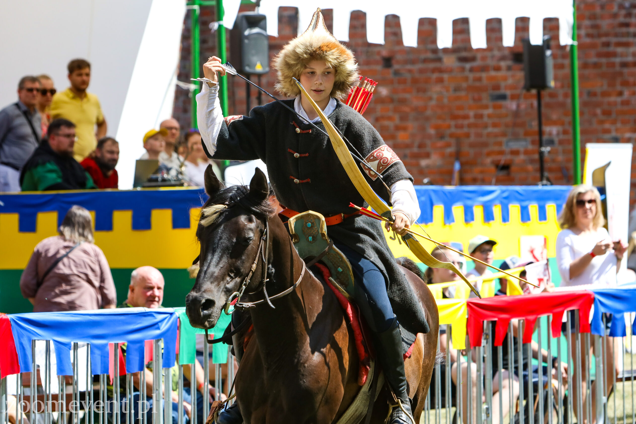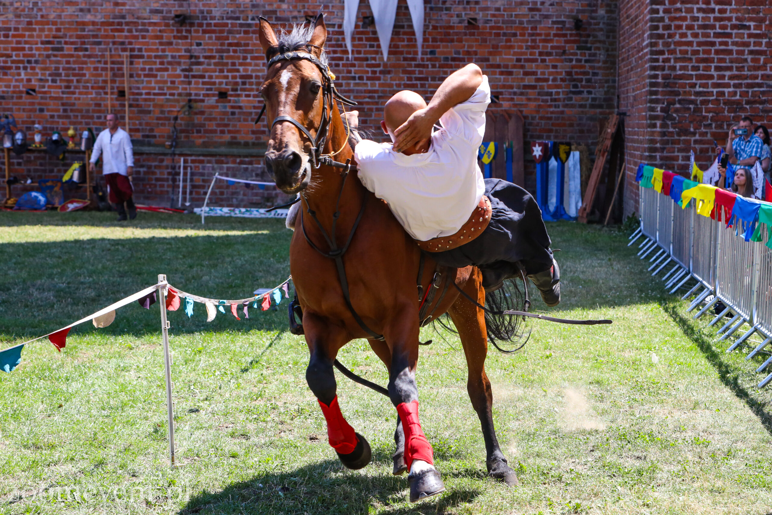 Na koniec pierwszej części pierwszego dnia turnieju na dziedzińcu pojawili się łucznicy. Najpierw mogliśmy oglądać AMM Archery i pokaz łucznictwa konnego. W dalszej części wystąpili łucznicy piesi z drużyny Sagittari St. Georgii