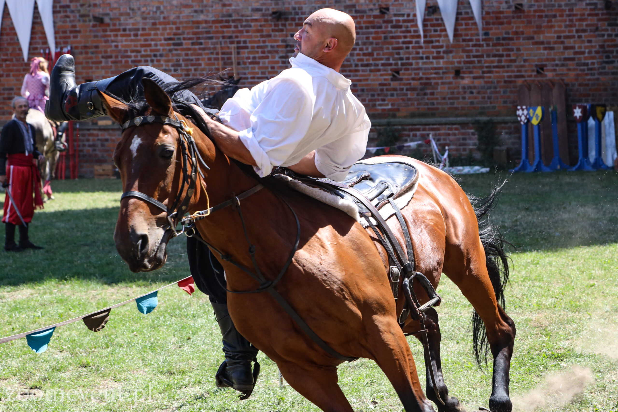 Dżygitówka to sztuka jazdy konnej o charakterze akrobatycznym i tę właśnie sztukę zaprezentowali członkowie Apolinarski Group. Pokaz tej odmiany woltyżerki wywołał ogromne emocje wśród oglądających.